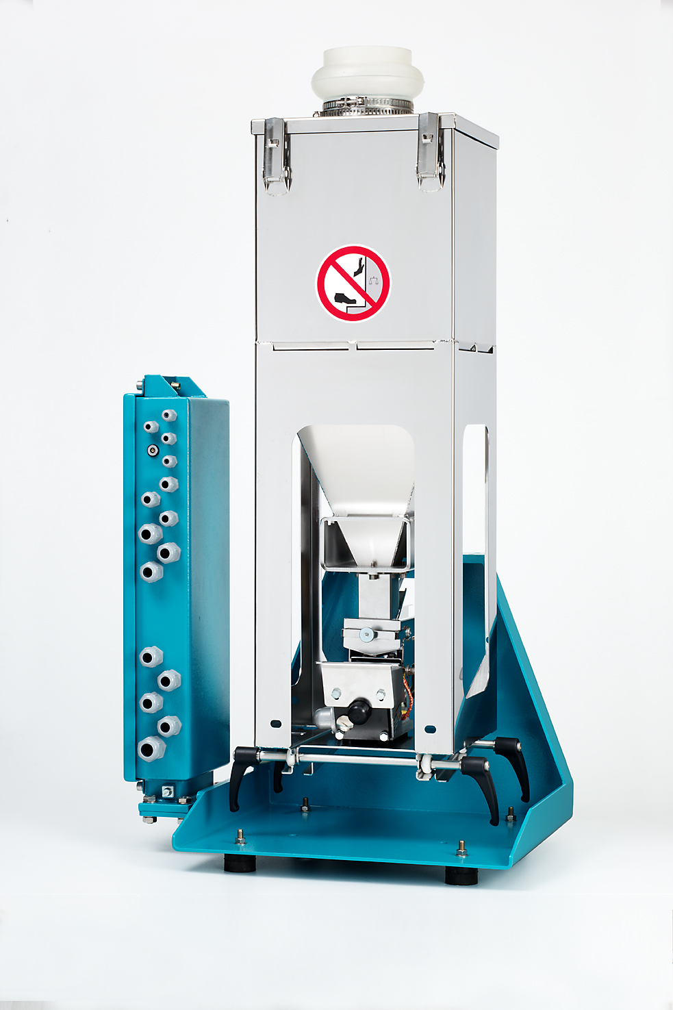 Ausführung: Lackierung nach Industriestandard, Produktberührte Bereiche in Edelstahl, Optional in Hygiene LvL 1 und 2 erhältlich
