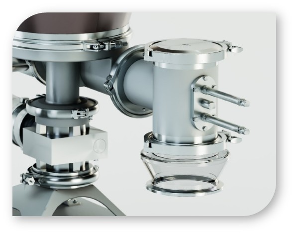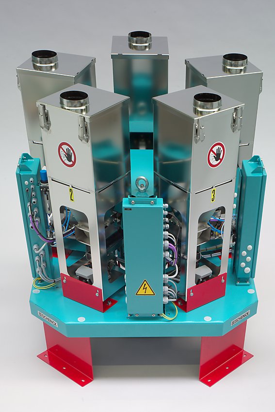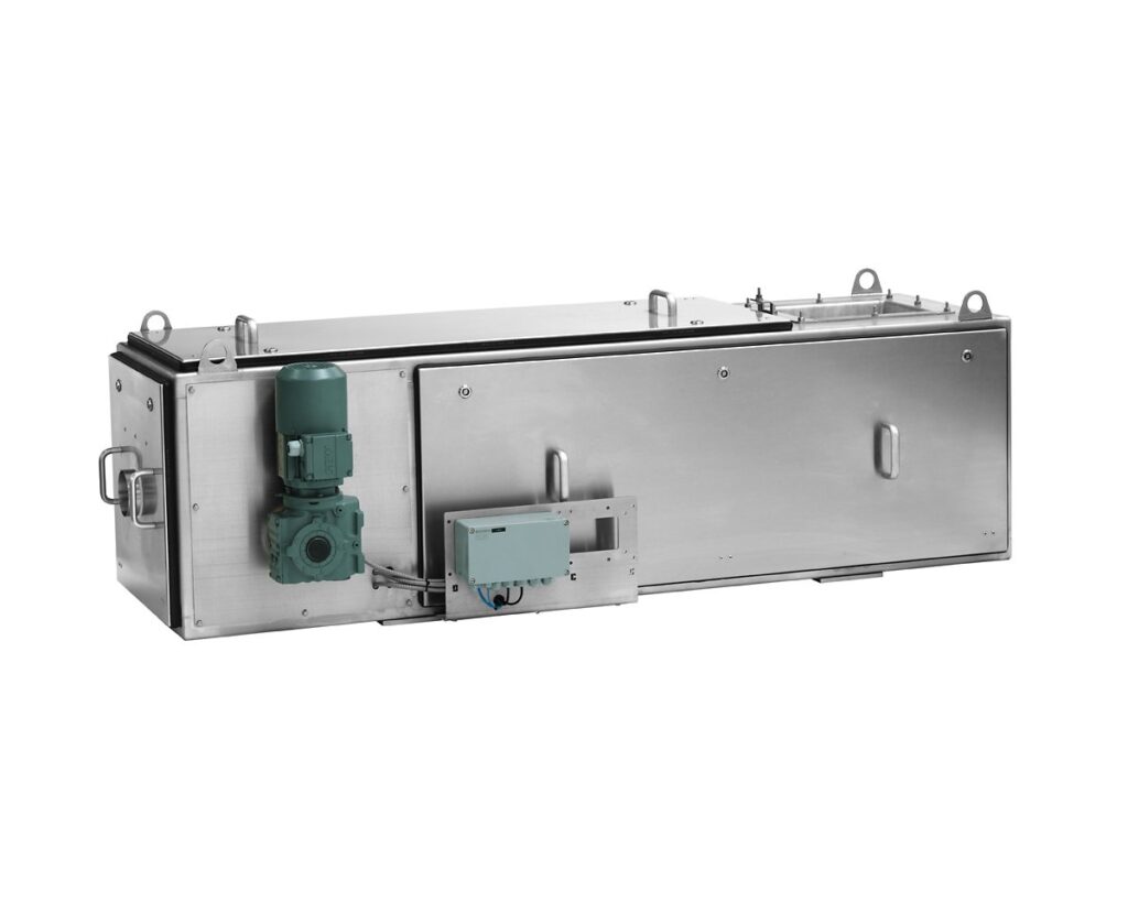 Ausführung: Lackierung nach Industriestandard oder für chemisch aggressive Umgebung, Produktberührte Bereiche in Edelstahl, Optional in Hygiene LvL 1 erhältlich