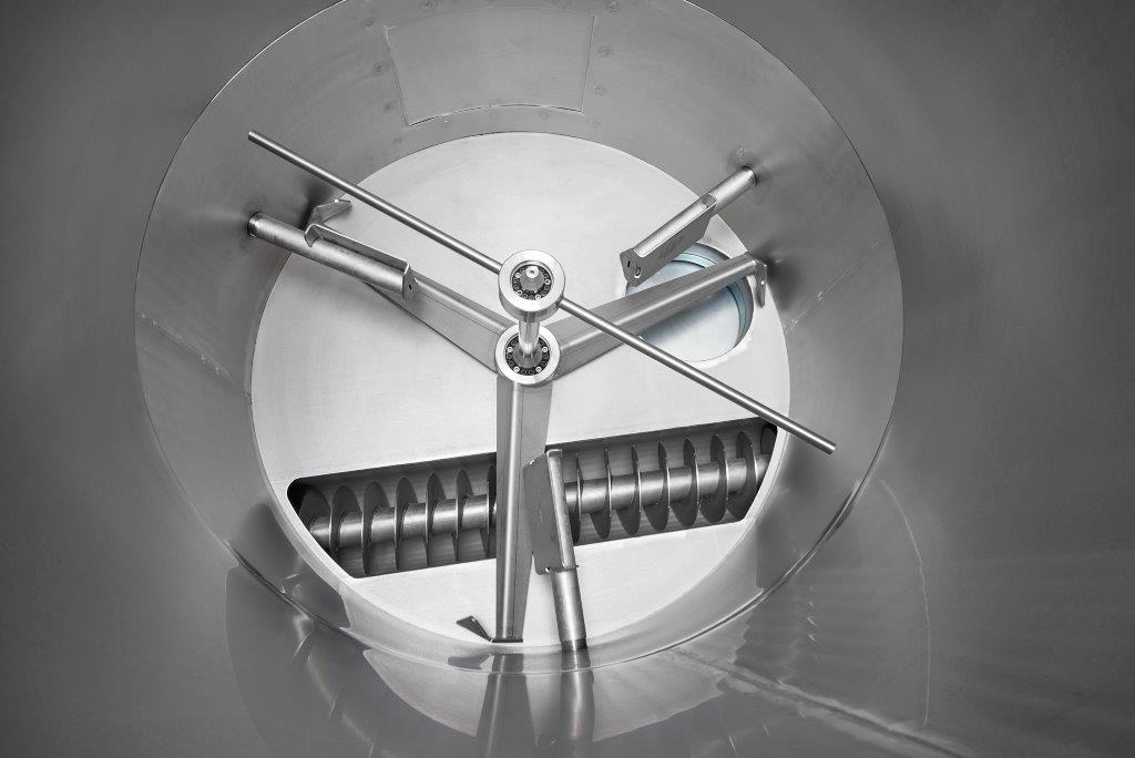 Besonderheit: erhöhte Staubdichtheit, ausgelegt für toxische Schüttgüter, vorbereitet für eine Sperrgasabdichtung sowohl der Schnecke als auch des Rührwerks.