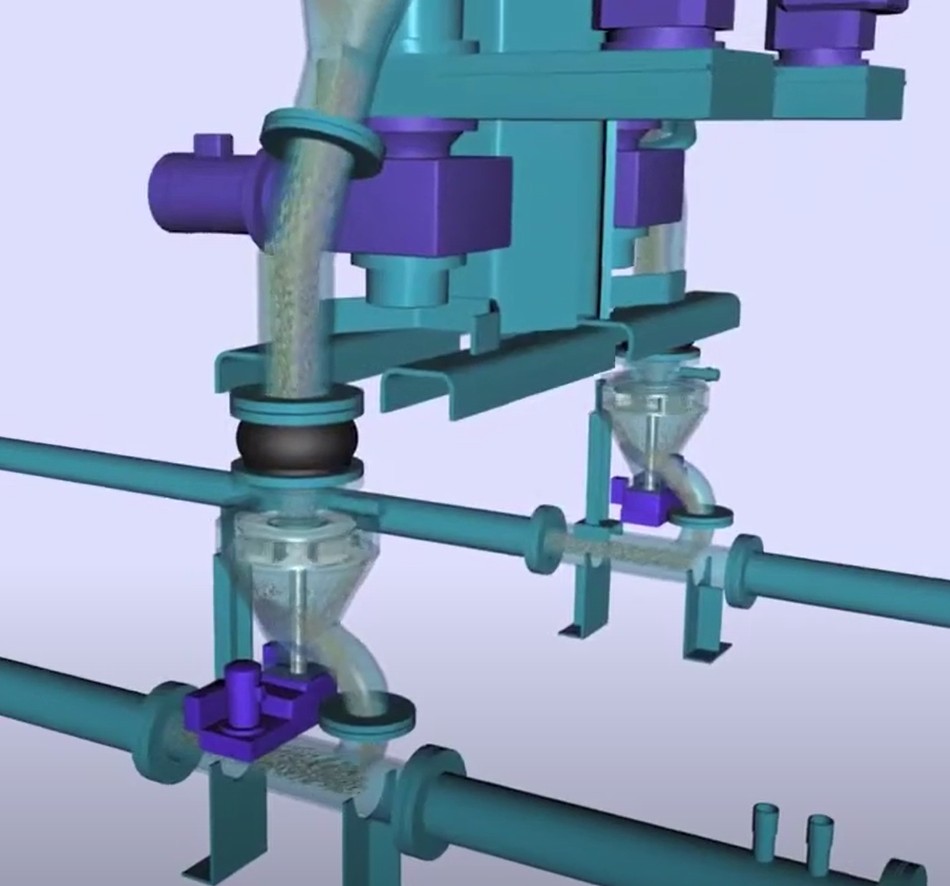 - Mehrfachdosierung unterhalb eines Silos mit dem Austragssystem MultiFlow mit bis zu vier Dosierungen
