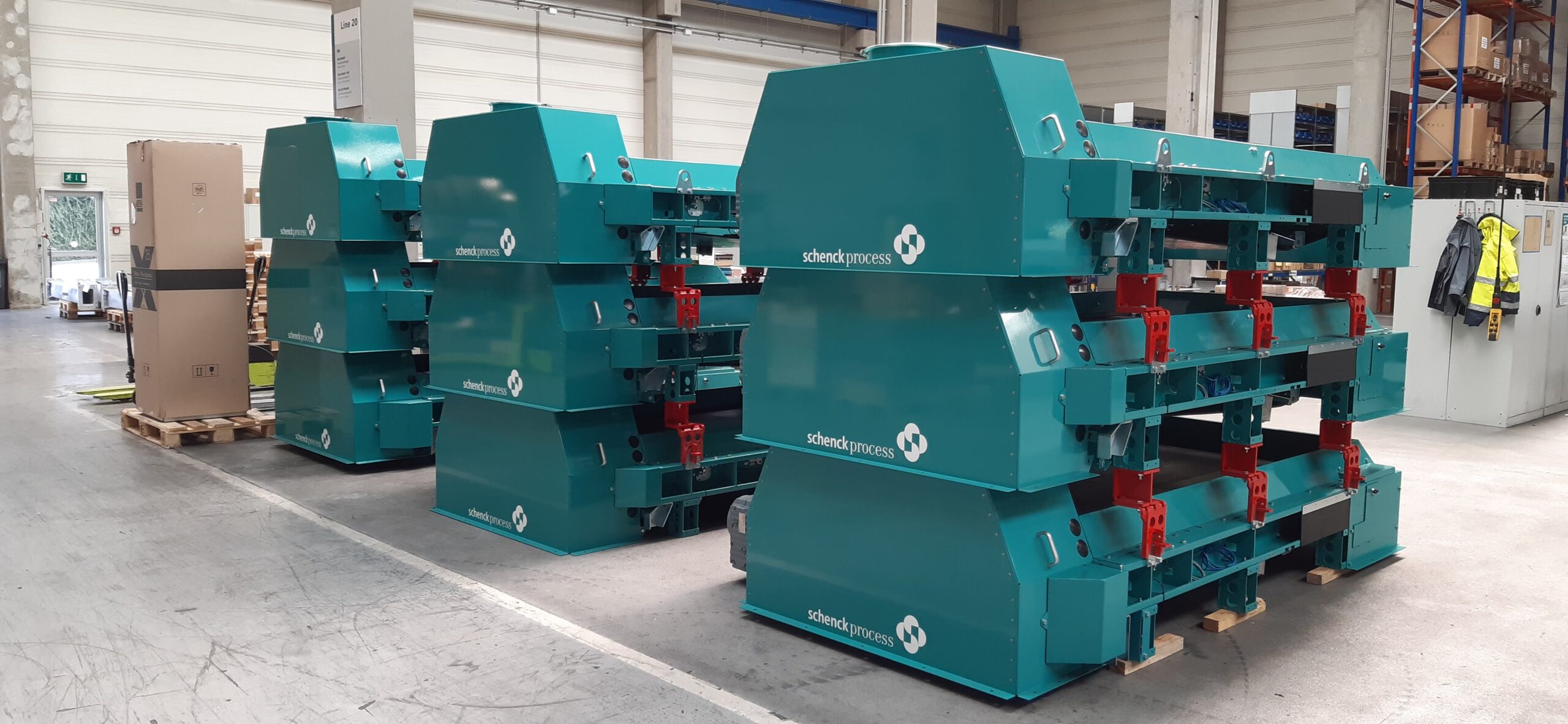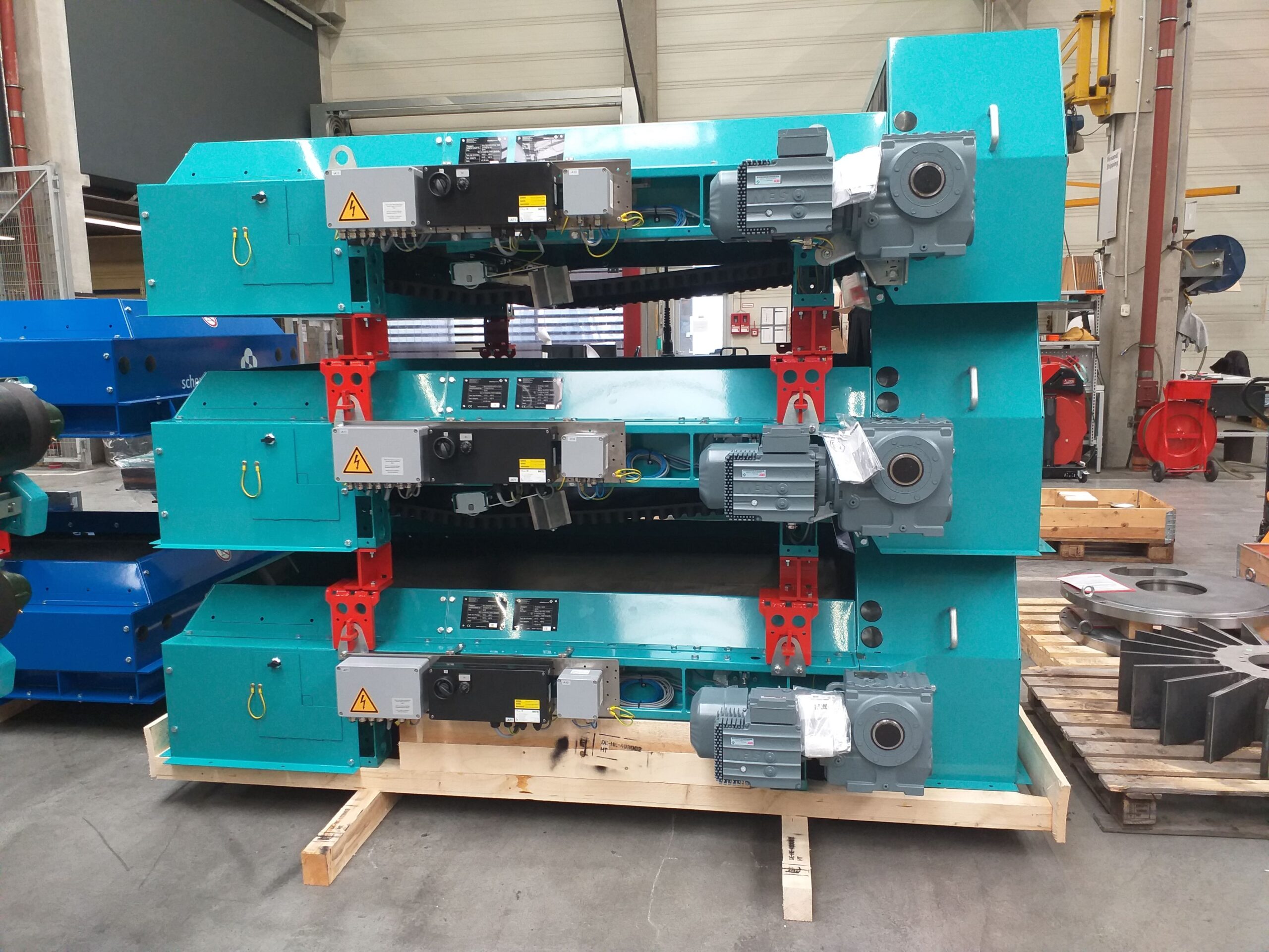 Ausführung: Lackierung nach Industriestandard oder für chemisch aggressive Umgebung, Produktberührte Bereiche in Edelstahl, Optional in Hygiene LvL 1 erhältlich
