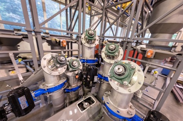 Optionale Wägetechnik: Über die Aufstellung einer Coriolis Wägetechnik von Qlar können die gewünschten Massenströme kontinuierlich und dosiert von einem Silo in die Förderleitung eingebracht werden.