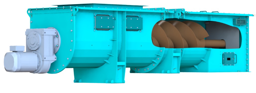 Besonderheit: erhöhte Staubdichtheit, ausgelegt für toxische Schüttgüter, vorbereitet für eine Sperrgasabdichtung sowohl der Schnecke als auch des Rührwerks.