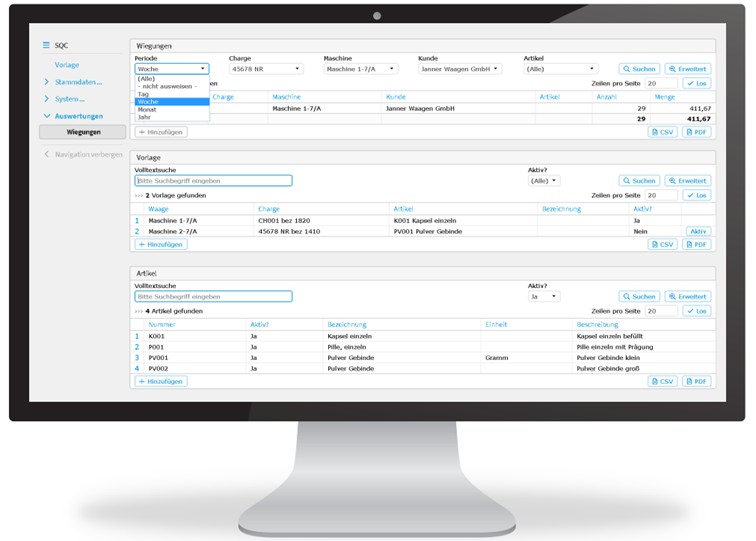 Durch den modularen Aufbau lässt sich die Software jederzeit an Ihre Anforderung erweitern, und Janner Waagen bietet darüber hinaus auch noch umfangreiche Waagen Peripherie-Lösungen zur Automatisierung Ihres Prozesses.